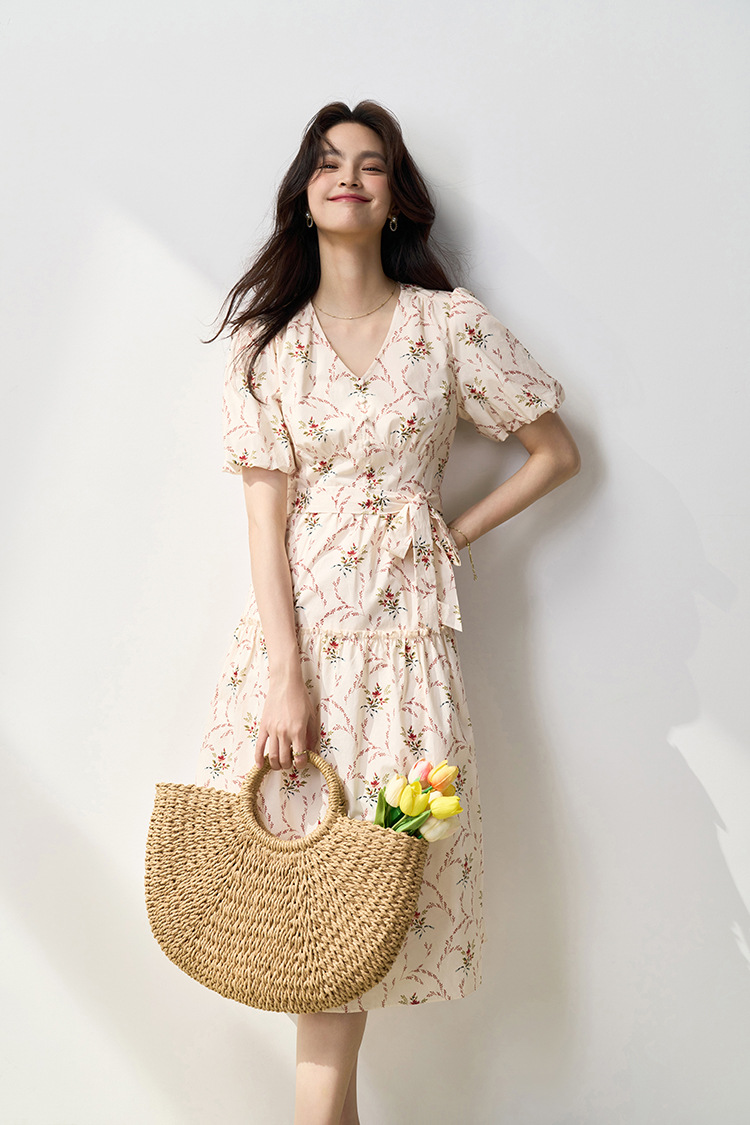 Puff Sleeve Pure Cotton Dress